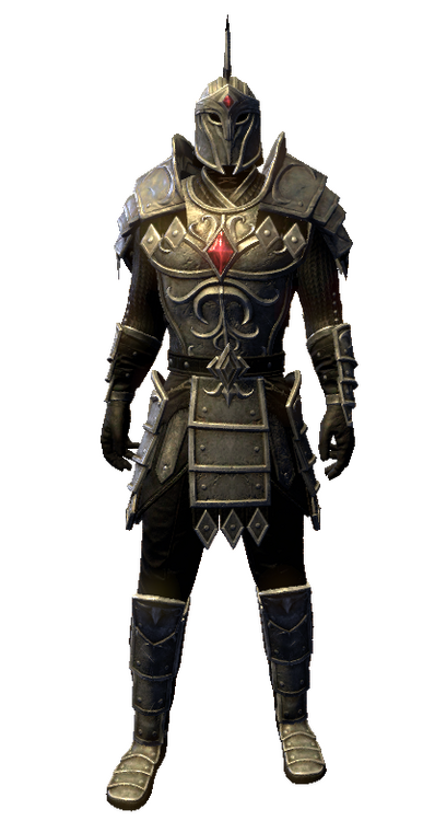 When the people of Akariue left behind their old life, so too did they shed their scales of gold. In this land ruled by the Lord of Iron, they hardened themselves for the life to come. As the one who showed them the path, a set of armor was commissioned by Kaisha-Chah for Revikus.The armor was made to resemble that of a raging storm; the black sky pierced by bolts of purple lightning and dark clouds. Though primarily of Tsaesci armor construction, elements of Colovian iconography exist. Its buckle is punctuated by a black diamond encased in iron.